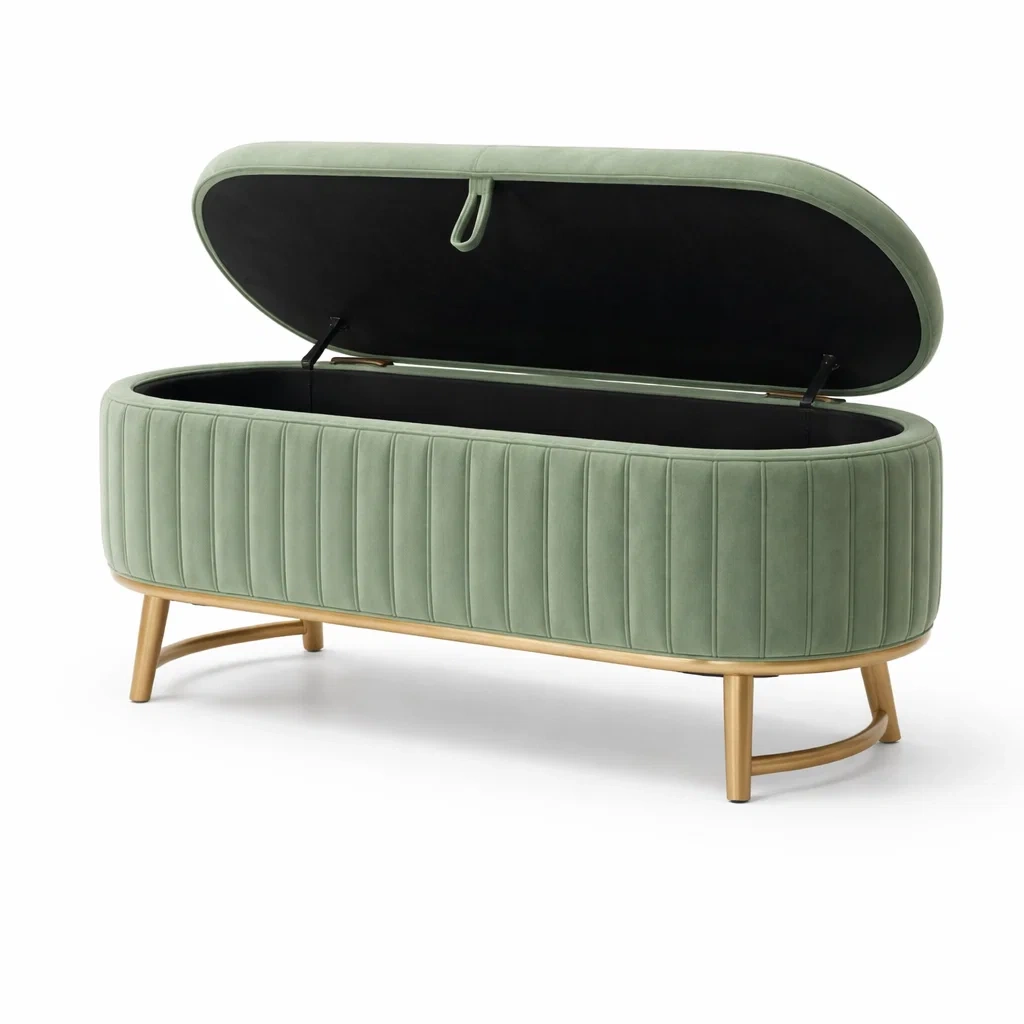 Material: Rahmen aus Sperrholz, Polsterung aus Polyester-Samt, Beine aus Edelstahl